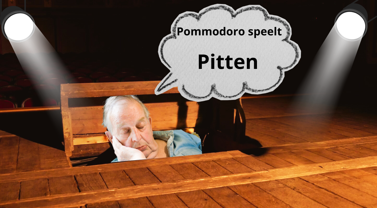 Pitten van Herman Heijermans is een scherpe parodie op zijn eigen vakgebied, op de gedragsmechanismen binnen een toneelgezelschap. Hij schreef deze komedie -over een toneelrepetitie die volledig in het honderd loopt- ter ere van het 25-jarige jubileum van de souffleur van het gezelschap. De ondertitel van het stuk luidt “spel van de souffleur”. Een souffleur fluistert acteurs hun teksten in, wanneer zij die vergeten. In het oude toneeljargon betekende pitten: volledig leunen en vertrouwen op de souffleur. Het pittend spelen was vooral in trek bij de wat minder ijverige toneelspeler. Ons gezelschap kampt ook met deze problemen. Voeg daarbij een steractrice die zich voorbereid op een interview met een journalist en haar vriendin om feedback vraagt, een geluidstechnicus die het ook allemaal niet weet, en de inspeciënt die de donder moet laten rollen en het weerlichten vergeet. Kortom, alle ingrediënten voor een heerlijke toneelvoorstelling.